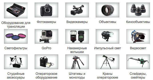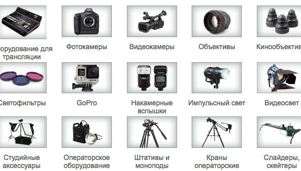 Наш фотопрокат предлагает широкую линейку профессиональной и любительской техники. Фото и видеокамеры, объективы, импульсный и постоянный свет, все виды операторского оборудования.
