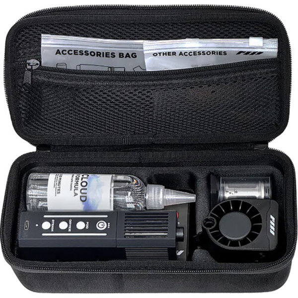 SmokeNinja-Pro имеет улучшенную защиту от нагрева, что позволяет увеличить время выброса, сохраняя при этом полностью безопасный и не имеющий запаха дым. Он обеспечивает до 3 минут выброса (в 3 раза больше оригинального) и более короткое время простоя с более быстрым восстановлением, поэтому вам никогда не придется ждать, чтобы сделать идеальный снимок. Увеличенная работа в режиме ожидания 60 минут. Машина использует фирменную формулу дыма и включает в себя легко заменяемую перезаряжаемую батарею. В комплект входит пульт дистанционного управления, распылительная камера для дыма, сменный картридж для дымовой формулы объемом 100 мл, набор точных насадок для формирования дыма, масляный блокиратор, кабель для зарядки USB-C, адаптер для крепления 1/4″, магнитное крепление и защитный чехол.
