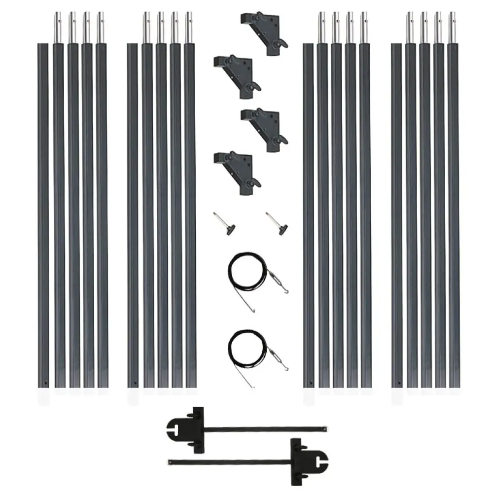 В комплект входят монтажные пластины с Т-образным пазом и стержнем (FH20), совместимые с крепежными головками типа Grip Head для установки на стойки, что позволяет создать устойчивую раму для шелковых экранов, сеток и многого другого.