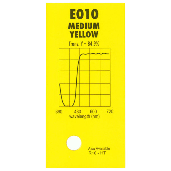 Гелевый (фолиевый) светофильтр Chris James № 010 Мedium Yellow относится к эффетным фильтрам. Используется со световыми источниками. Данный фильтр представляет собой чистый ярко-жёлтый свет, используетя для создания спецэффектов и ярких акцентов.