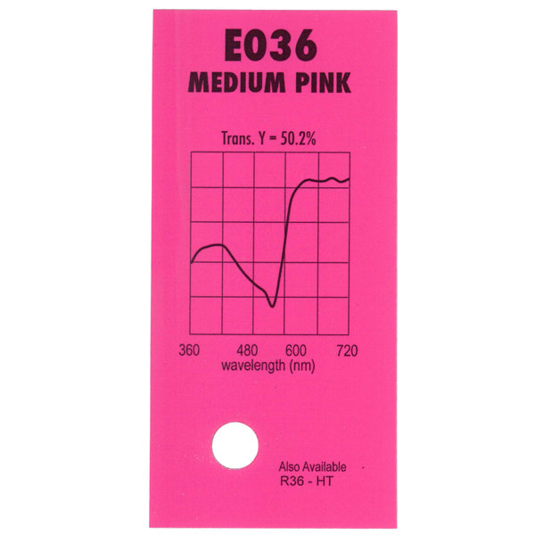Гелевый (фолиевый) светофильтр Chris James № 036 Medium Pink относится к эффетным фильтрам. Используется со световыми источниками. Данный фильтр применяется для заливки и бокового освещения.