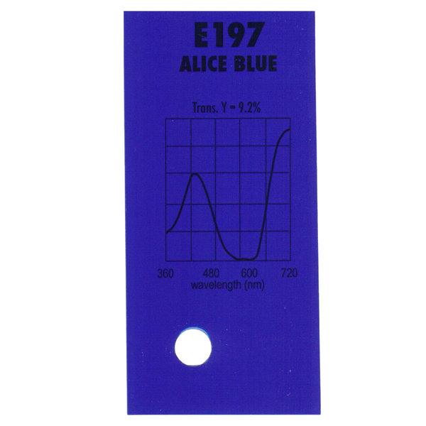 Гелевый (фолиевый) светофильтр Chris James № 197 Alice Blue относится к эффетным фильтрам. Используется со световыми источниками. Данный фильтр применяют для создания эффекта глубокого синего неба и заливки циклорамы.