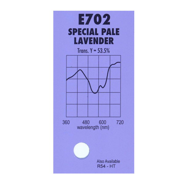 Гелевый (фолиевый) светофильтр Chris James № 702 Special Pale Lavender относится к эффетным фильтрам. Используется со световыми источниками. Данный фильтр применяют для дополнительной подсветки.
