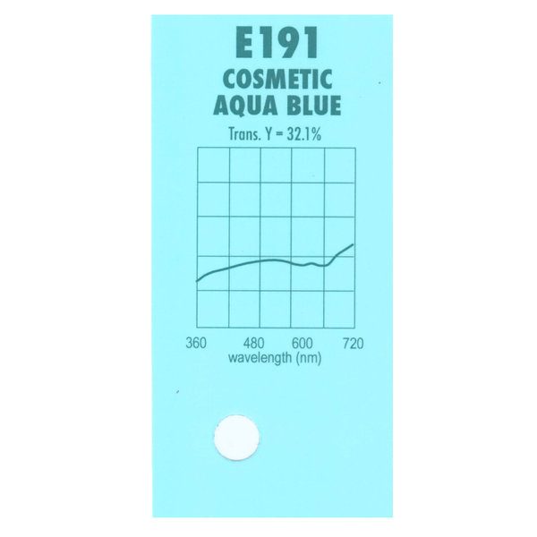 Гелевый (фолиевый) светофильтр LEE № 191 Cosmetic Aqua Blue относится к эффетным фильтрам. Используется со световыми источниками. Данный фильтр хорошо подходит для прохладного переднего света.