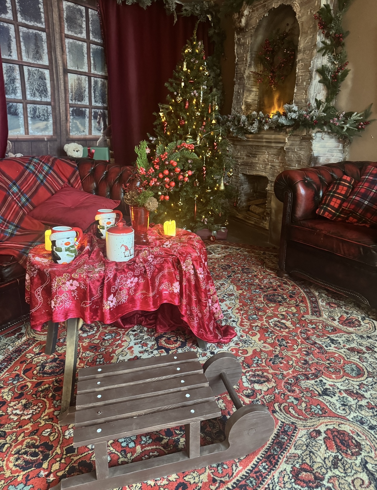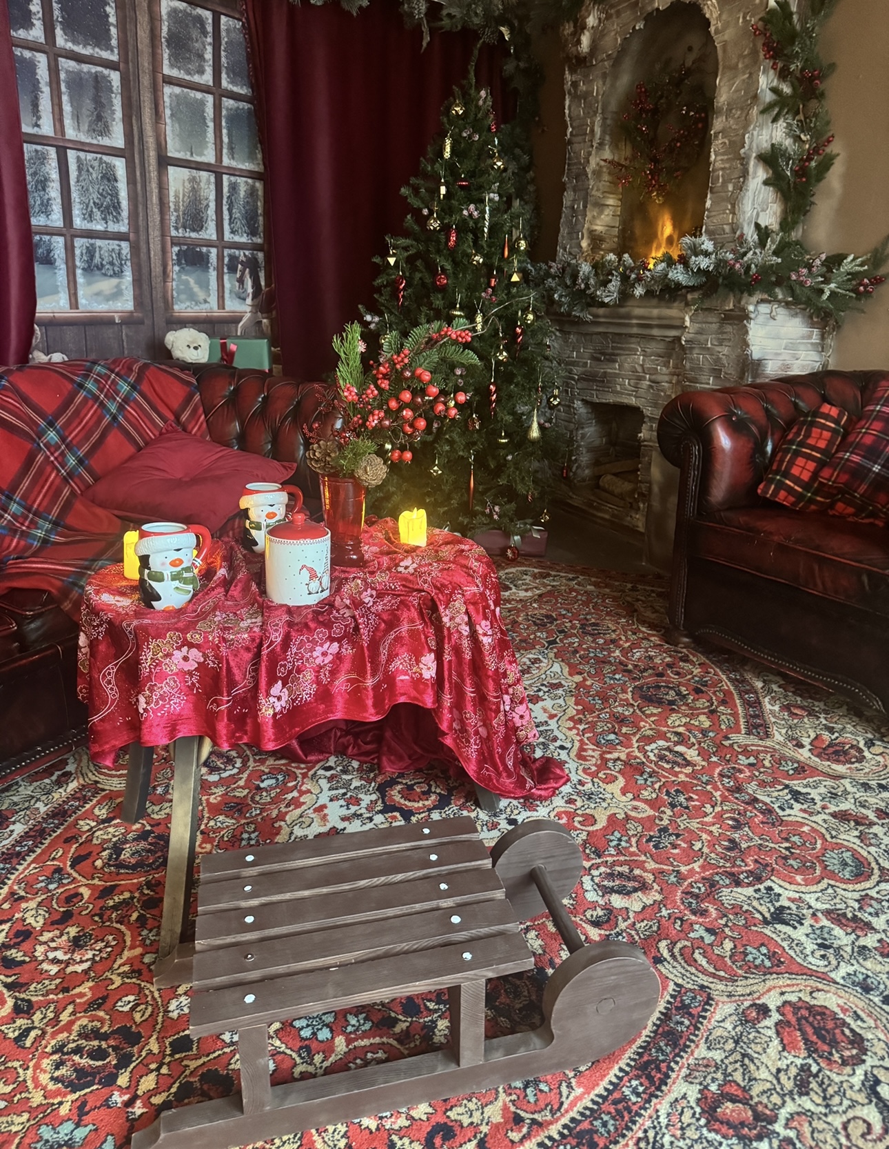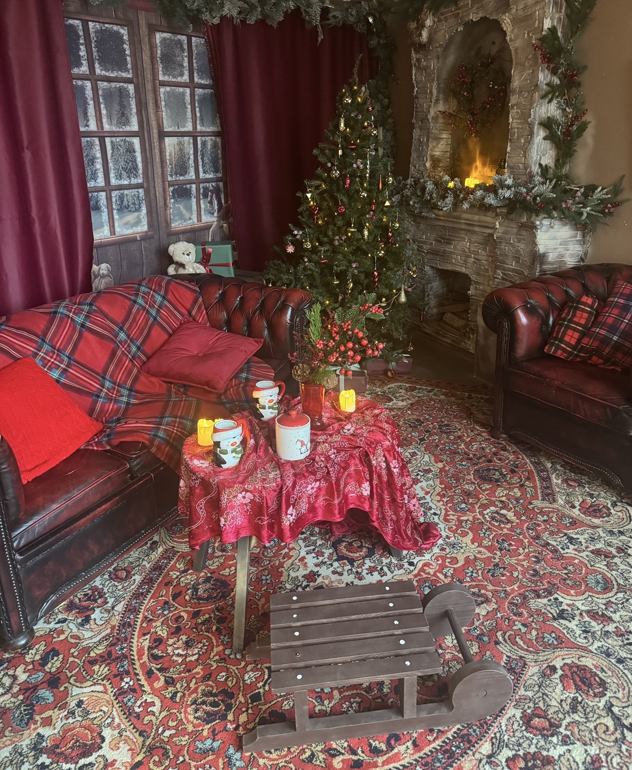 10. Комната с камином и диваном в нг елки