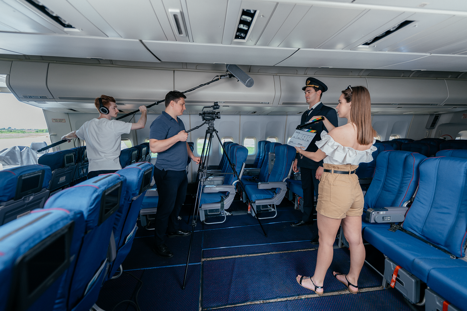 Для реализации задумки режиссера перебуксируем самолёт в нужный ракурс