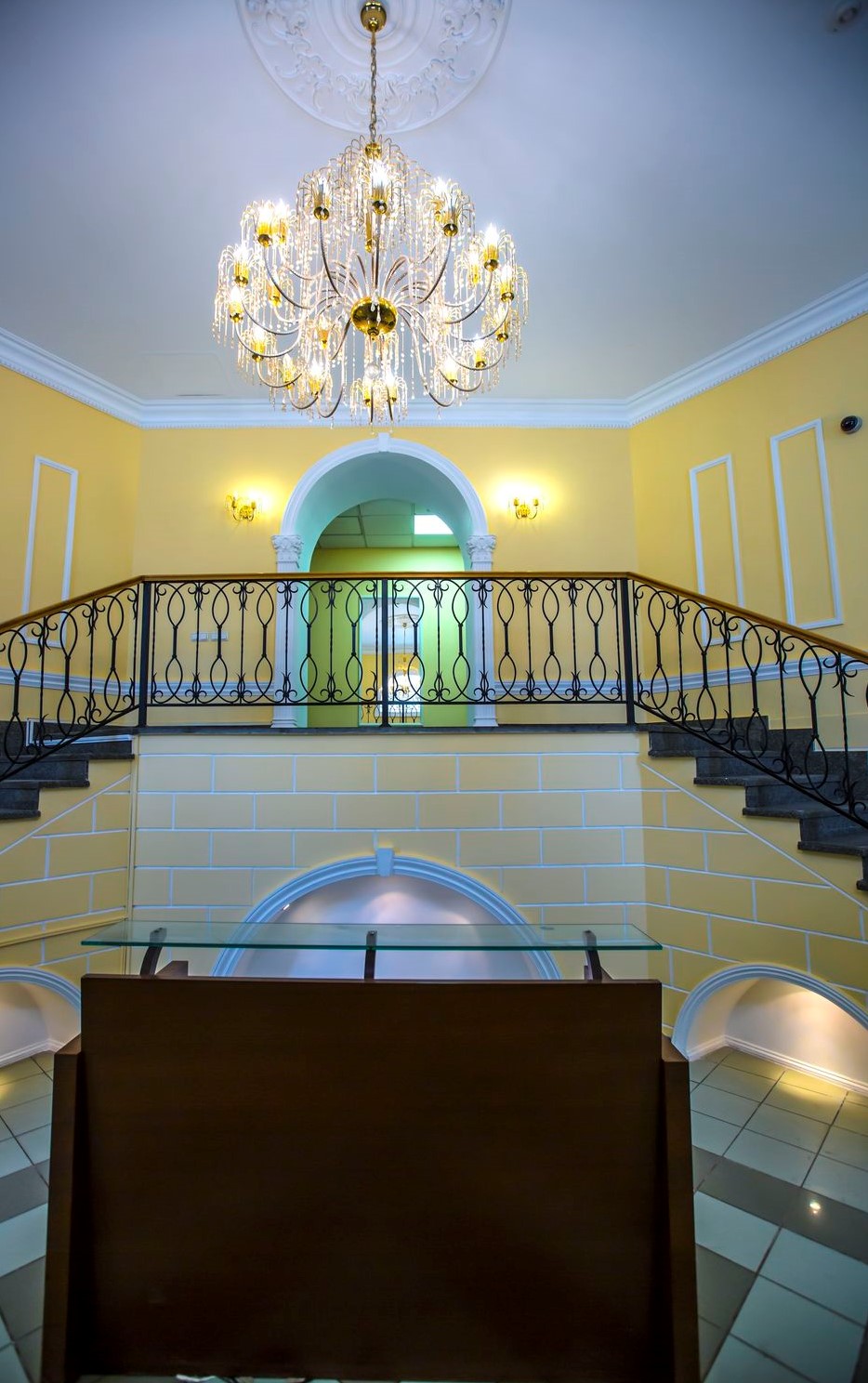 Фактура:Бальный зал, Большая/Двойная лестница, Вид на город, Доступ к воде, Звукоизоляция, Ковролин, Колонны, Кондиционер, Мраморный пол, Обои на стенах, Пожарный выход, Текстурные стены, Цветные стены