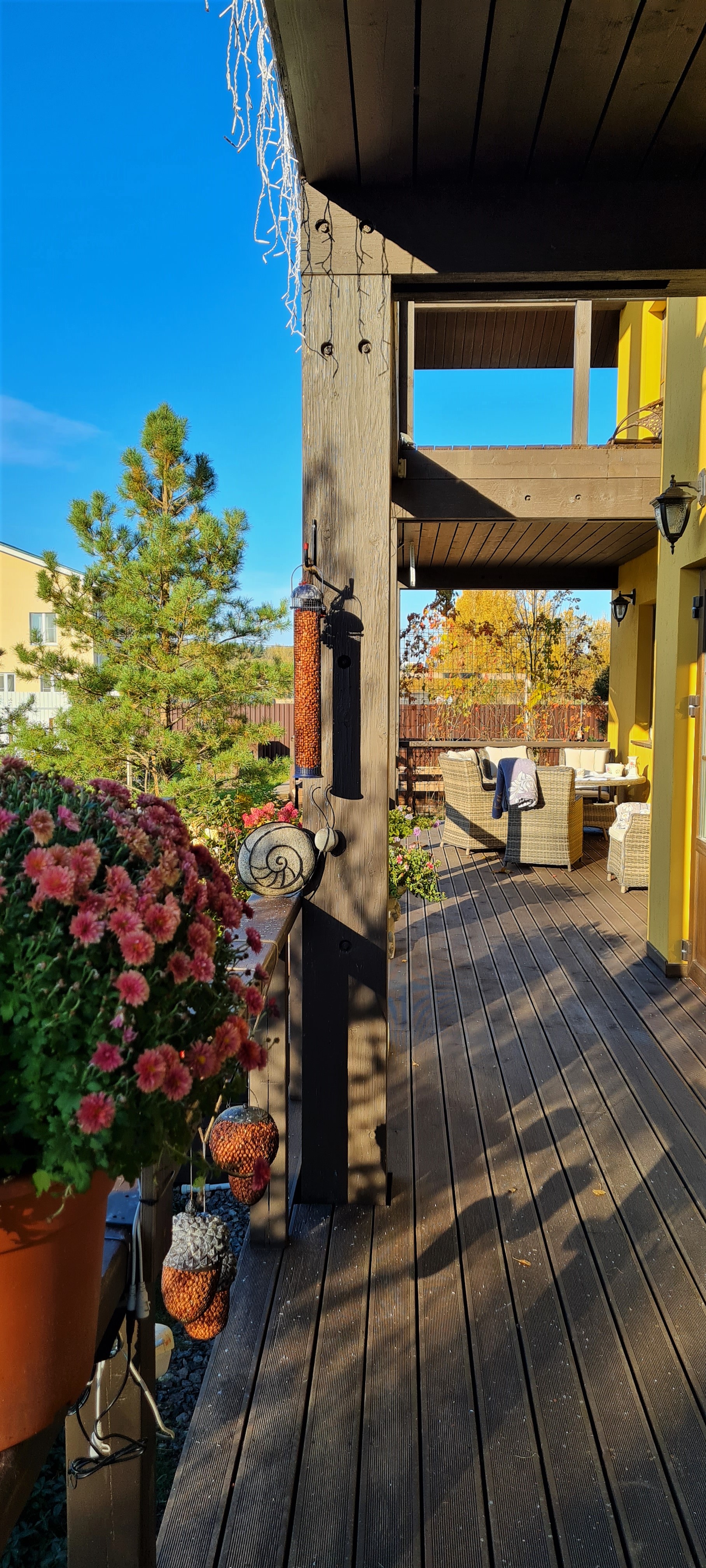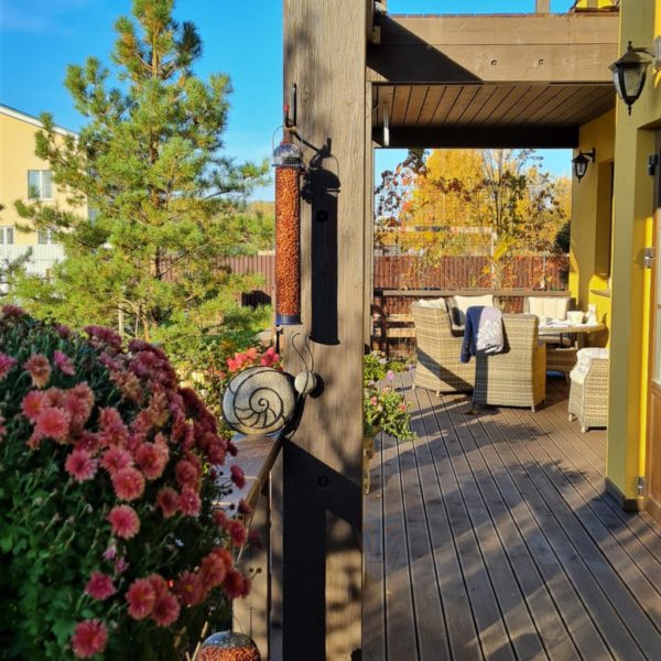 — терраса площадью 70 метров с мебелью из искусственного ротанга.