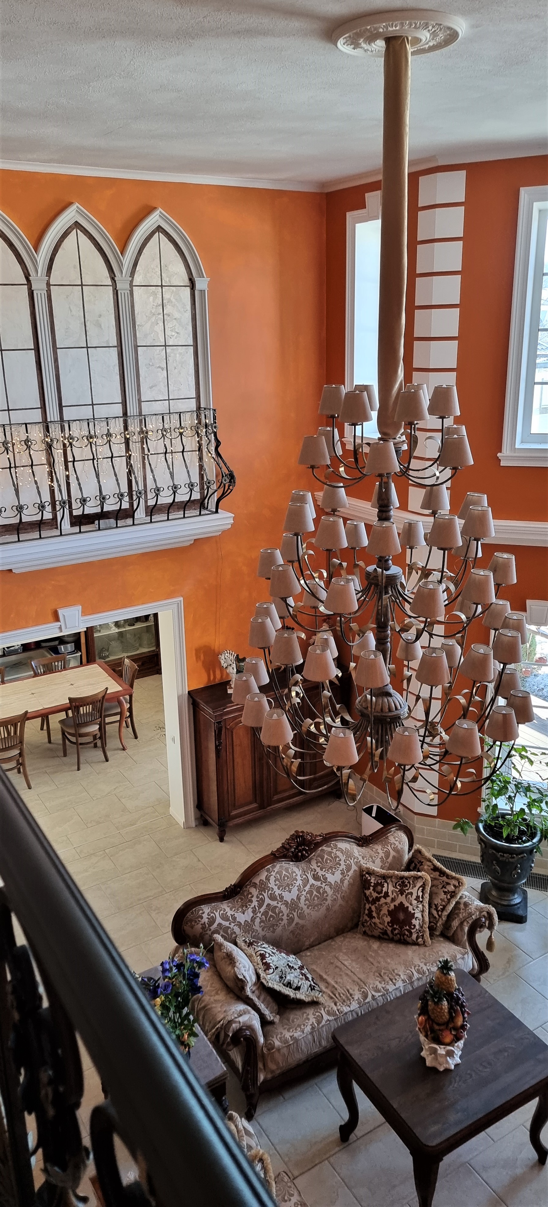 — гостиная 50 метров с пятиметровыми потолками и вторым светом,
